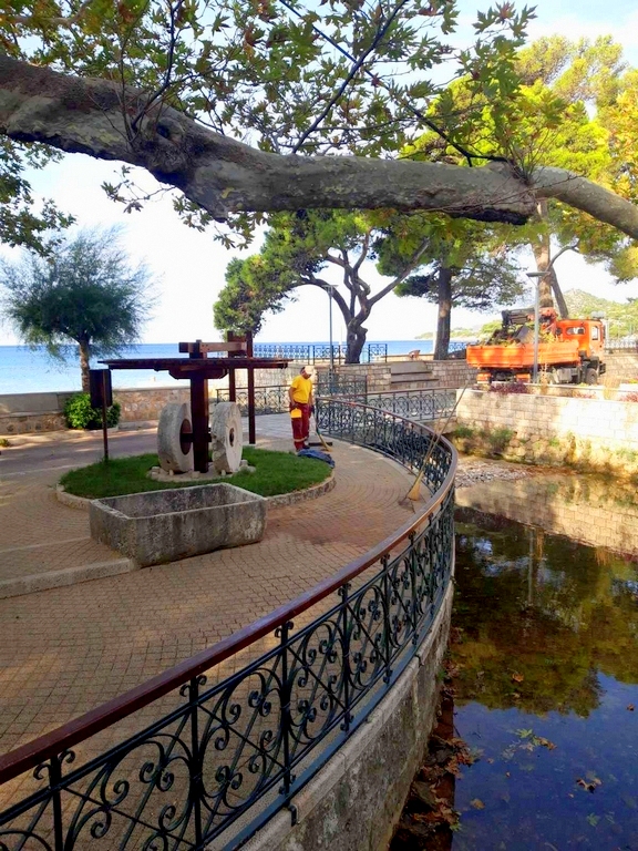 U četvrtak, 14. kolovoza 2025., u jutarnjim satima organizirano je pranje i čišćenje šetnice od platana do parkinga na mulu.
