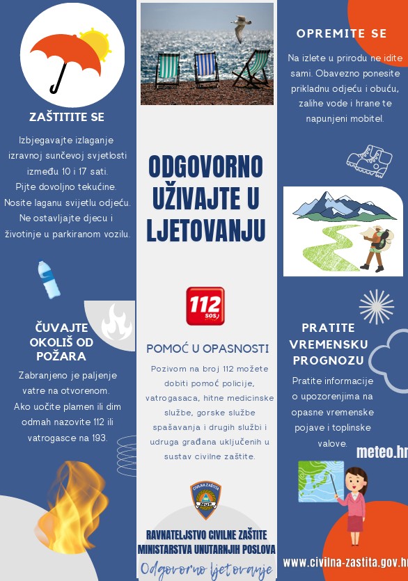 Na sljedećim poveznicama možete preuzeti informativni plakat „ODGOVORNO LJETOVANJE“, na hrvatskom i engleskom jeziku: HRVATSKI  ENGLESKI